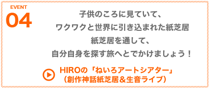 生音演奏をバックにHIRO がオリジナル紙芝居を語ります。
